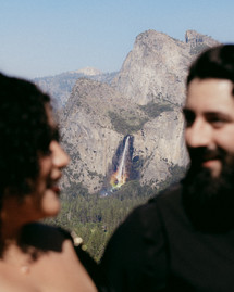 After their first look, the soon-to-be newlyweds exchanged bracelets made with beads matching each other's eye colors. We captured a few more photos at Tunnel View, where a little rainbow had formed at the bottom of Bridalveil Fall before making our way to Yosemite Valley for their ceremony.
